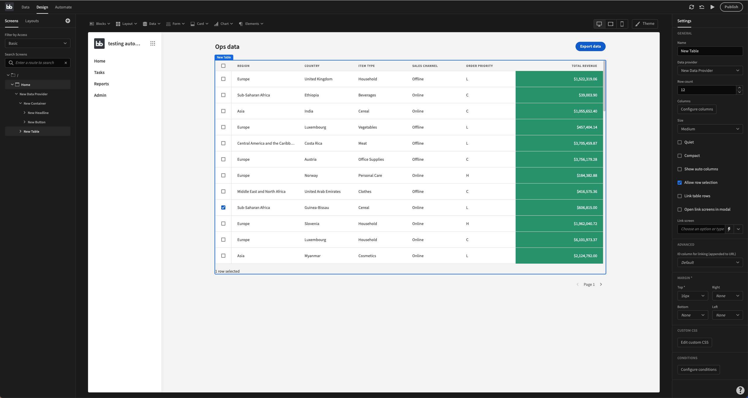 Build everything from inventory management apps, to maintenance management software, goal trackers, project quotation tools, and more. Budibase is the fast, easy way to build CRUD applications for managing a huge range of business processes. We offer extensive external data support, autogenerated screens, custom automation, and a huge variety of professional app components, perfect for a wide range of operations solutions.